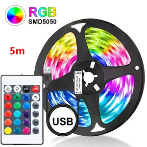 The 5V USB RGB LED Strip Light is a versatile and easy-to-install lighting solution for home, office, or entertainment spaces. With Bluetooth compatibility, you can control the lights remotely via app, adjusting colors, brightness, and effects to suit any mood. Designed with durable 5050 LEDs and a flexible PCB, it provides vibrant, energy-efficient lighting for up to 50,000 hours. The strip is available in multiple lengths, making it perfect for shelves, desks, cabinets, or accent lighting.